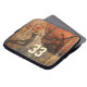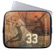 Bolsa de laptop personalizada de basquete com silhuetas de dois jogadores de basquetebol voando para o tronco reverso e para o tronco de golfe - placa gráfica do tema basquete composta de basquete, aro e quadra com efeito de gradação e nome personalizável e número de camisa por katz_d_zynes