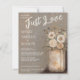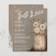 Nothing Fancy Just Love Floral Mason Jar Wedding Invitation with RSVP information included for a less formal affair, so you don't nee a separate R.S.V.P. Card. Embrace a charming rustic aesthetic for your special day with this "Just Love" wedding invitation. Featuring a beautiful watercolor floral arrangement spilling from a vintage mason jar against a weathered wood background, this invitation sets a warm and inviting tone for your rustic country celebration. The "Nothing Fancy" tagline, and the elegant script for "Just Love" perfectly capture a relaxed yet romantic feel. It's an ideal choice for couples planning a barn wedding, farmhouse celebration, or any rustic-themed event seeking a touch of natural beauty and heartfelt simplicity.