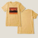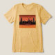 Um gráfico moderno e estilizado mostra a linha do horizonte icônico do Nova Iorque contra um plano de sol vibrante e gradiente. A silhueta inclui vários arranha-céus reconhecíveis com linhas lisas e formas geométricas que melhoram o design futurista e elegante. Impresso na camisa da canvas.