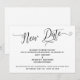 A distinção deste conjunto se deve à fonte de texto elaborada e com curvas usada para as frases de destaque. Caso precise informar aos seus convidados que o casamento foi adiado, este cartão oferece uma opção elegante. Nesta peça, a fonte caligráfica foi usada para criar um gráfico com as palavras "Nova Data". Use os campos do modelo para adicionar seus detalhes pessoais e tornar este design único. O fundo pode ser alterado para qualquer cor de sua preferência. Por favor, entre em contato para solicitações especiais ou para obter ajuda na personalização. // 98 //