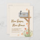 Este cartão postal de lançamento em movimento no outono apresenta uma caixa de correio de cor d'água e folhas de outono em um plano de fundo creme. Diz "New Season New Home" na tipografia da na moda. Facilmente personalizável com seu novo endereço e número de casa na caixa de correio. Original Watercolor © Michele Davies.