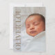 Apresentando seu recém-nascido ao mundo com um anúncio de nascimento sincero, esta carta elegante apresenta uma foto precioso do seu bebê na frente, adornada com o nome dele em um guião delicado e na moda. A parte de trás da carta compartilha os detalhes de nascimento do bebê — data, hora, peso e comprimento — ao lado de uma breve e tocante história de sua chegada. Este anúncio maravilhosamente desenhado não só captura a alegria e o amor em torno desse momento especial, como também proporciona uma preciosa manutenção para a família e os amigos.