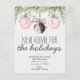 Informe familiares e amigos e deseje Feliz Natal no mesmo cartão com nosso cartão postal "Casa Nova para as Festas". O design apresenta alguns ramos de árvore de Natal e enfeites pendurados com laços elegantes. Personalize com suas informações frente e verso.