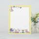 Esta cartola apresenta vários bebês e um carrinho no fundo, uma cegonha que entrega um bebê no canto superior esquerdo e uma borda amarela.