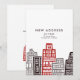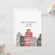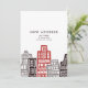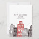 Cidade estilo retrô com edifícios de desenho animado vermelhos e pretos para um anúncio de novo endereço muito exclusivo.
