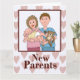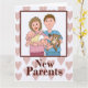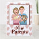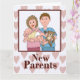 Desenho mostrando um casal feliz segurando seu novo bebê nascer. O desenho é rodeado por representação gráfica de corações.