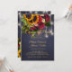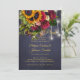 Elegante e chique modelo de cartão de convite para remarcar, adiar ou informar nova data de casamento rústico de inverno em quadro-negro azul-marinho escuro com um lindo buquê de girassóis amarelo-dourado e rosas burgundy e cordões ou luzes brancas cintilantes. +++++++++++++ Fácil de personalizar com seus detalhes! ++++++++++++ Você pode optar por personalizá-lo ainda mais alterando as fontes e as cores das letras. ++++++++++++++++ Se precisar de ajuda para personalizá-lo ou fazer alguma alteração no design, por favor, envie-me uma mensagem!