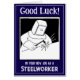 Boa sorte no seu novo trabalho como Steelworker. Ilustração do Steel Worker. Personalize com a sua escolha de texto e mensagem dentro. Cartão Boa Sorte para um Trabalhador de Aço, Steelworker ou Metalworker.