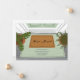 Ilustração da porta dianteira com porta verde com plantas cercadas em cada lado e tapete de boas-vindas sobre tapete de dispersão verde.