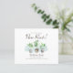 Cartão-postal simples de lançamento móvel com duas fábricas de aquarela em potes. A tipografia usada é moderna, mínima e fácil de personalizar com seus detalhes clicando no botão "Personalizar" acima. Você pode personalizar seu novo anúncio de endereço com mais detalhes e incluir um número de telefone e email no verso.