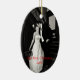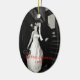 Um adorável ornamento oval com uma fotografia personalizada. O texto vermelho diz, Nosso Primeiro Natal 2010. Personalize com sua própria foto de casamento na frente e atrás. Um maravilhoso ornamento de guardar memória para os recém-casados.