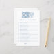 Adicione um pouco de diversão ao seu chá de panela com o tema azul com este charmoso novo fora do mercado, que conhece o melhor jogo da noiva! Os convidados vão adorar testar quão bem eles conhecem a noiva a ser com esta atividade lúdica e interativa — perfeita para uma celebração de chá de panela. Esses cartões de jogo fazem parte de uma coleção de chás de panela com itens de coordenação disponíveis. Nós o encorajamos a explorar o conjunto de cheios para criar uma celebração perfeitamente igualada.