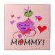 Um sapo verde giro, muitos corações cor-de-rosa e vermelhos, e texto que diz "Eu sou a nova Mamãe!" em caixas de manutenção da nova mãe, azulejos, ornamentos, cadernos, adesivos, cartões, canecas, mousépias, botões e muito mais!