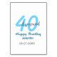 Numeração De Mesa 40th & renewed birthday name date blue bold number