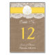 A coleção de casamentos de areia amarela é um design impressionante que apresenta um adorável fundo de efeito de burvolta rústico com uma trim romântica de efeito de renda branca vintage terminada com um incrível dólar de areia e fita amarela. Estes cartões de tabela podem ser personalizados para sua ocasião especial e tornariam a mesa perfeita para seu casamento, chá de panela, festa de noivado, festa de aniversário e muito, muito mais. *Observe que o Zazzle só vende produtos impressos para que este item não tenha nenhum material real de burlap, renda, dólar de areia ou fita. *** COMO PEDIR *** Personalize e adicione cada placa de número de tabela ao seu carrinho, um a um. No momento, o Zazzle não tem um sistema que permita qualquer personalização dos produtos após um pedido ter sido feito.