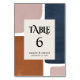 Abstrato rust, marinho + número moderno da mesa de casamento. Design de pintura gráfica manual. Texto de script e tipografia em negrito.