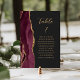 Numeração De Mesa Agate Burgundy Dourado Casamento Escuro do Script
