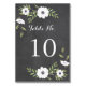 Cartão de número da tabela de anêmonas pintados em quadro chalkboard. Personalizável. Parte de uma coleção de casamento.