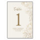 Surpresa botânica em ouro creme marfim número da mesa de celebração de aniversário de 50 anos de casamento. Design moderno minimalista apresenta sotaques botânicos e fonte de tipografia em script. Cartão floral simples perfeito para uma festa elegante.