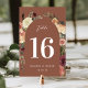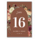 Cartões elegantes e russos apresentam um arco de rosa de aquarela e flores mães em tons de marsala, burgundy, rosa-pincel e marfim com folhagem verde. O número da tabela, a data do evento e o texto personalizado adicional são exibidos no centro. Design repete-se no lado oposto. Coordena-se com a nossa suíte de convite para casamento floral Rustic Bloom elegante para outono ou casamentos no inverno.