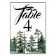 Esta elegante placa numérica da tabela apresenta uma imagem de estilo aquarela de uma floresta de pinheiros do Noroeste do Pacífico. Uma bela paisagem de pinheiros verdes encosta a parte inferior da mesa.