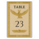 Este elegante cartão de número de mesa inspirado no Egito apresenta um disco de sol alado dourado com um símbolo ankh, emoldurado por hieróglifos e colunas de papiro. O número é editável, permitindo flexibilidade. Perfeito para um casamento com tema egípcio e combina bem com cartões de lugar, menus e quadros de assentos correspondentes.