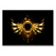 Asas mecânicas brilhantes, com engrenagens e faixa redonda de latão. Steampunk