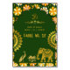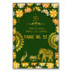 Esta elegante e elegante carta de números de mesas de casamento hindu apresenta uma rica esmeralda e design de marigold com uma arca esmeralda moghul, maravilhosamente acentuada por detalhes dourados de lótus, pavão, elefante e um símbolo Om. Seus nomes, data do casamento e número da mesa são exibidos na frente e atrás em um layout luxuoso e festivo. Posso ganhar uma pequena comissão com compras feitas através das minhas ligações sem custos adicionais para si.