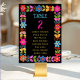 Mande seus convidados em estilo vibrante com esta moderna carta do número da mesa de casamento mexicana. Apresentando um quadro floral colorido inspirado pela tradicional arte folclórica mexicana, floresce em vermelho, amarelo, rosa e pop de turquesa contra um fundo preto rico. O contraste vívido garante que o número da tabela é fácil de ler enquanto adiciona um toque festivo e elegante à decoração de recepção. Perfeito para casais que procuram infundir suas celebrações com encanto cultural, cor alegre e sofisticação moderna.