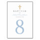Personalizar o Bebê Azul Script Religioso Cross Boy Número da Mesa Batismo.