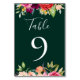 Trendy emerald green, placa de número de tabela de cor sólida, com bordas florais botânicas, desenhadas para corresponder à nossa Coleção de Sangue Boêmia.