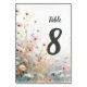 Numeração De Mesa Boho Watercolor Wildflower Personalize