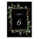 Esta placa de número da mesa de casamento apresenta cor d'água eucalipto, folhas verdes, bagas vermelhas, ramos de pínus com uma falso estrutura retangular em ouro sobre fundo preto. Para personalização mais avançada deste design, clique no link "Personalizar mais". Itens correspondentes também estão disponíveis.