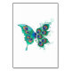 Borboleta detalhada, desenhada artificialmente, ficcional, verde, com penas verdes, bonitas e pavões em fundo branco.