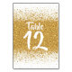 Um elegante número de cartão de mesa de casamento com um efeito de confete dourado borrifado sobre um fundo branco. Um design impressionante para o seu dia especial. Também estão disponíveis cartazes de casamento e convite. O estilo, cor e posicionamento da fonte também podem ser alterados de qualquer maneira.
