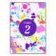 Belo salpico de tinta neon, cartões de número de mesa em tons de rosa, amarelo, malva, laranja e azul. Altere as cores do número, oval e borda se desejar. Ótimo complemento para a sua celebração neon, brilho no escuro.