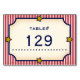Estas placas de Número de Tabela personalizáveis esportes uma etiqueta de marfim gravada, enfeitada com estrelas douradas e marinho de borda azul centrada em um fundo listrado de marfim vermelho, branco e azul, são da nossa coleção original de casamentos patrióticos, vermelho, branco e azul, que reflete os estilos gráficos populares na Campanha Presidencial Americana de 1904, ganhada pelo Ursinho Roosevelt. Certifique-se de personalizar o campo Numeral ou limpá-lo.