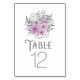Um delicado e arejado buquê de flores de aquarela em tons pastéis, de lilás a rosa-orquídea junto com uma fonte decorativa de 'Mesa', todos se reúnem para oferecer um toque elegante para a decoração da mesa de casamento neste cartão numérico. Procure ID654 para ver as outras peças neste conjunto de casamento completo.