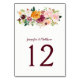 Cartões de números de tabela de buquês florais cor de água amarela, cor-de-rosa-pincel, mauve e açafrão. O texto é burgundy. Personalize com suas próprias informações.