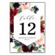 Na moda, cartões florais de números da mesa de casamento com o número da sua mesa, nomes e data de casamento moldados por burgundy pintada, rosa-pincel e flores marinho azul-d-água com folhagem verde-escura. Os números elegantes das mesas são feitos para coordenar com a nossa coleção de casamento Floral Encantada. Adicione cada placa de número da tabela ao seu carrinho individualmente.