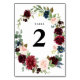 Numeração De Mesa Burgundy floral Wreath Número da mesa