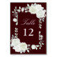 Numeração De Mesa Burgundy Gothic White Roses Wedding Table Numbers