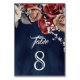 Numeração De Mesa Burgundy Red Roses Floral Navy Blue Wedding