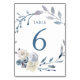Numeração De Mesa caixa azul floral com aquarela Número 6