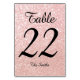 Uma elegante fonte de caligrafia moderna preta para o número da tabela e texto personalizado. Você pode alterar ou personalizar o estilo, o tamanho e a cor da fonte. O fundo é um fundo de fotos com brilho de ouro pálido e rosa, impresso com um borrão em tons de rosa pastel a branco. Crie seus próprios cartões de números de tabela de fotos falsa para seu casamento. O brilho será uma fotografia impressa e não flocos de gliteria reais.
