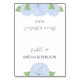 As hortênsias azuis são as minhas flores favoritas. Esta é a minha própria arte original de aguarela. Todo o conjunto de casamento é coordenado. NOTA: Estes cartões chegam planos. Você dobra-os ao meio para transformá-los em cartões de mesa. Personalize cada cartão para convidados individuais e adicione cada cartão ao seu carrinho separadamente.