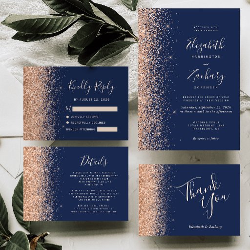 Modern Peach Glitter Navy Blue Wedding SuiteCriado por Akhates Designs
