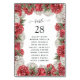 Cartões de assentos de casamento vermelho e branco com sotaques de verde-floresta. Destacados são dália, crisântemo e rosas.