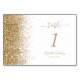 A borda esquerda deste elegante número da mesa de casamento moderna apresenta um design dourado faux glitter. O texto personalizável combina uma letra pálida de cor dourada, uma letra copperplate e uma letra itálico num fundo branco.