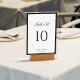 Elevem o decor de recepção com nosso Número de Tabela de Casamento Branco e Preto do Script Clássico Formal. Esta elegante placa de número de tabela apresenta um design preto e branco eterno com tipografia de script sofisticada, perfeita para adicionar um toque de classe ao seu casamento formal ou de gravata negra.